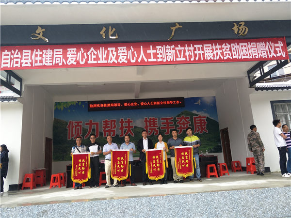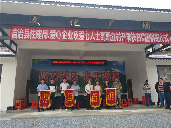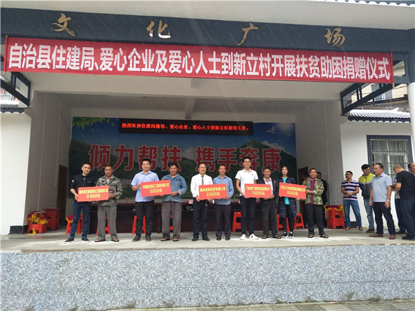 ----隆林县住建局携手爱心企业和爱心人士到新立村举行扶贫助困捐赠仪式