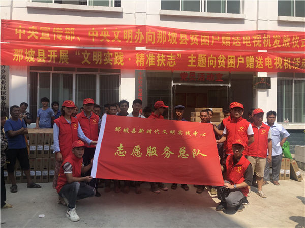9月17日上午,那坡县开展“文明实践·精准扶志”主题向贫困户赠送电视机活动,把中央宣传部、中央文明办赠送贫困户760台电视机送到贫困户家中安装。