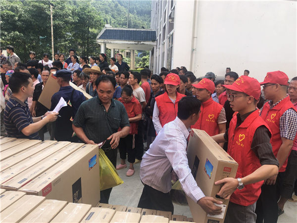 志愿者给贫困户发送电视机现场