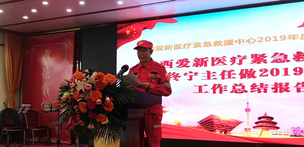 广西爱新医疗紧急救援服务中心主任爱新觉罗·佟宁做了2019年度工作报告。据介绍,广西爱新医疗紧急救援服务中心,前身是贵州省红十字会医疗紧急救援总队、中国国际医疗紧急救援队,广西医疗紧急救援中心组成。成立于2006年9月,先后参加了2008年1月份特大凝冻灾害、2008年4月14日缅甸海啸国际救援、2008年5月12日汶川地震救援、玉树地震救援、舟曲泥石流救援、云南彜良地震救援、2013年4月20日四川雅安芦山地震救援、2014年云南鲁甸地震救援、2016年梧州苍梧地震救援、2017年九寨沟地震救援、四川攀枝花泥石流救援、贵州毕业納雍县泥石流救援、2019年广西北流地震救援、广西陆川县化工爆炸、广西靖西地震救援、日本311地震国际救援以及海地地震的国际救援等。