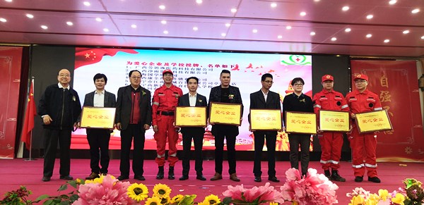 活动中,广西爱新医疗紧急救援服务中心对柳州支队、桂林支队、玉林支队、横县分队、灵山分队、容县分队、巴马分队等7支“优秀救援团队”进行了表彰。先后为广西劳思逸医药科技有限公司、广西康全药业连锁有限公司、广西净雨思航科技有限公司、圣海国学幼儿园、南宁市江南南城百货有限公司亭江分店、南宁高新区地凯育仁幼儿学校、容县回春中医馆、容县巧巧诊所、广州云星物业有限公司南宁分公司、广西纵合广告有限公司、广西名扬影视传媒有限公司、广西申真科技发展有限公司、广西南宁丹瑞电子科技有限公司、广西南宁市承运广告有限公司、广西粮运集团、广西金滩管业科技有限公司、南宁桂明堂中医馆、广西七星堂生物科技有限公司等18家爱心企业进行了表彰。同时还为广西爱新医疗紧急救援服务中心37名优秀管理干部及27名十佳优秀救援队员颁发荣誉证书。