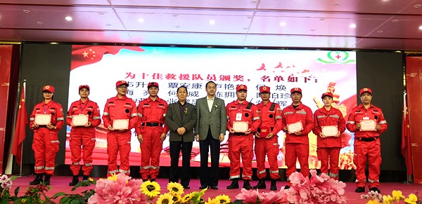 为“优秀救援团队”颁发牌匾 黎 坚 摄影