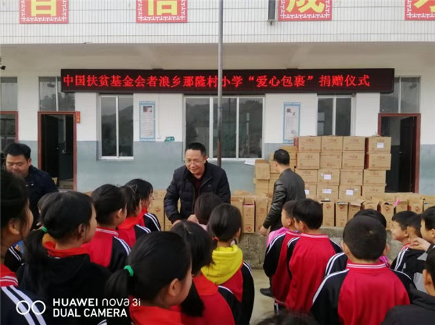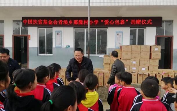 2020年1月2日上午,隆林各族自治县教育局资助办及扶贫办领导在者浪乡中心小学吴兴贵校长等陪同下,将中国扶贫基金会爱心人士捐赠的爱心包裹送到了者浪乡那隆村小学111个学生手上。