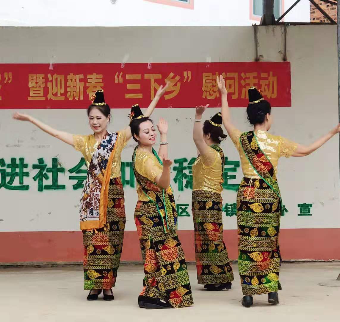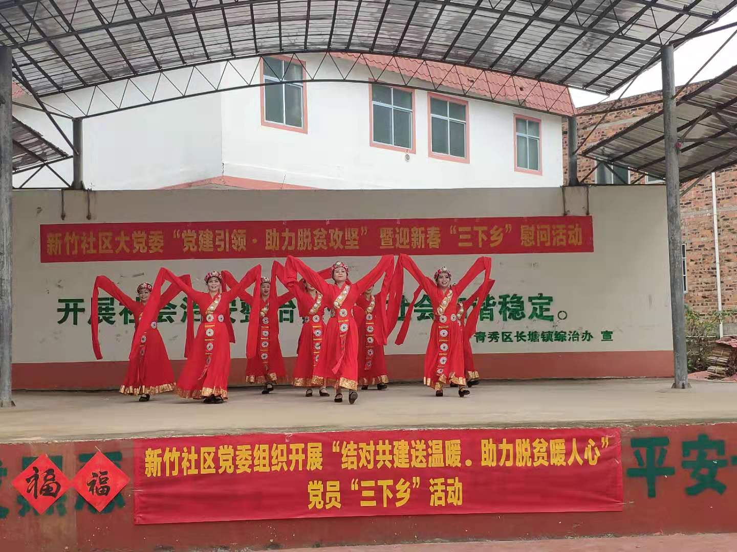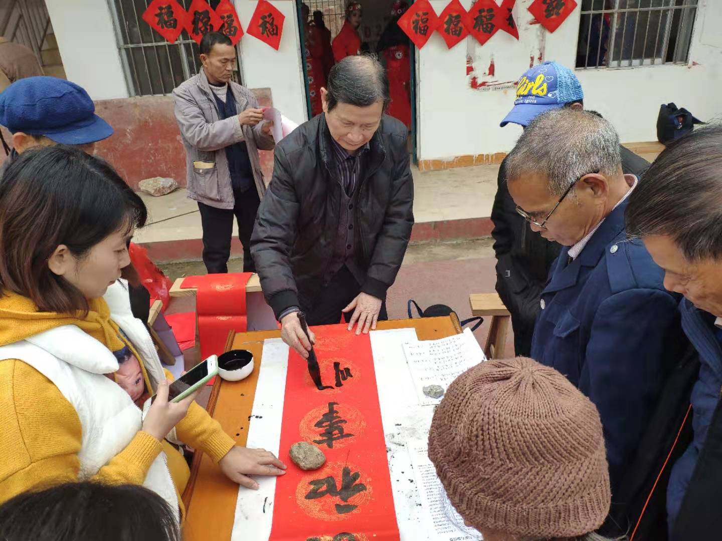 在扶贫慰问活动中,社区居委会的老年朋友们也自发组织表演队,为村里的老百姓献上了精彩的文艺节目表演,活动中还安排了中国传统书法展写,现场为村民和贫困户写春联,让大家感受到浓浓的年味。