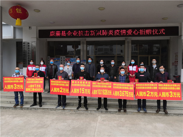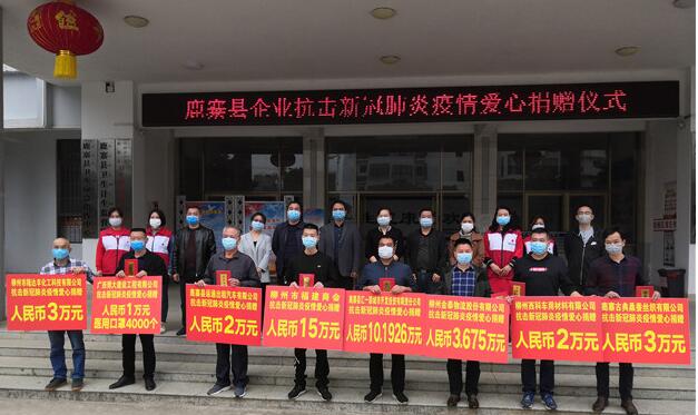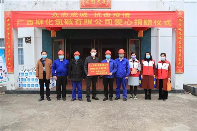 广西柳化氯碱有限公司先后9次为鹿寨县捐赠消毒水等防疫物资,共计价值76.78万元;