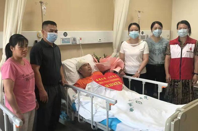 据悉,韦明显早年离异,独女尚在读大学,无经济能力。住院期间,家人东拼西凑了治疗费6万余元,还存在着很大经费缺口。镇党委、政府极为关注韦明显的病情,为了拯救韦明显的生命和他的家庭,联系鹿寨县红十字会在2021年5月,向全县各单位、各位爱心人士发出捐款倡议,截止目前,共接收到163314.93元爱心捐款。