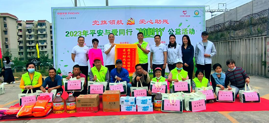 爱心植树,绿色环保。3月12日上午,“党旗领航 爱心助残”2023年平安与爱同行植树节公益活动在南宁市小星星残疾人辅助性就业基地举办。