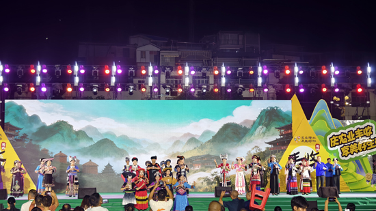 晚上,城东文化体育广场则变成了欢乐的海洋与民族文化的殿堂,一场以“庆农业丰收享美好生活”为主题的文艺晚会在这里精彩上演、引人入胜。群众们用山歌、舞蹈、戏剧等多种形式,生动展现了农耕群众与农耕场景的和美乡村画面,让人们在欣赏民族文化的同时,也深刻感受到了乡村的美丽与和谐、宁静与安详。