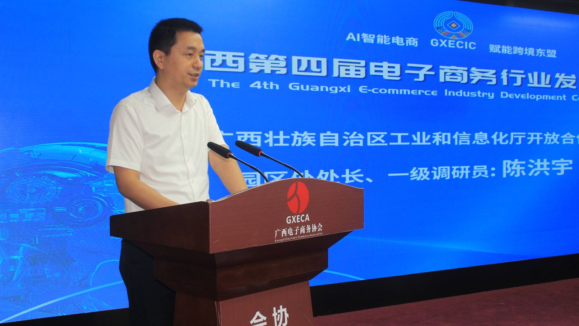 广西壮族自治区工业和信息化厅开放合作与工业园区处处长、一级调研员陈洪宇在大会上致辞