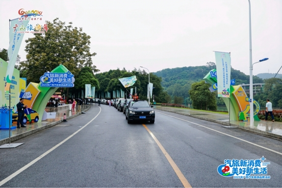智驾游广西精品旅游线路发车仪式上,由30辆车组成的“绿色智驾游广西”车队正式启程,奔赴体验5条广西秋季精品自驾线路,体验广西汽旅生活的无穷魅力。旅游自驾达人将通过直播,以“行进式报道”全方位展示沿途壮美广西的秋日盛景。