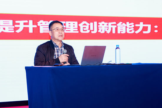 然后,广西大学二级教授、博士研究生导师黎鹏以《提升企业管理创新能力——从提升企业领导力出发》为题开展精品课程培训,从新时代企业管理创新能力的内涵特征及其提升方向、企业领导力的重要作用、如何从提升企业领导力出发提升管理创新能力等方面进行了授课培训。