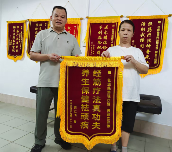 在广西凭祥市夏石镇甲同屯老房子里,一张漆色斑驳的木诊桌静静立在堂屋中央。桌角泛着温润光泽,桌沿指印交织成纹路,诉说着二十年前的人间温情。这里曾是“黄氏经筋”技艺的展示舞台:每逢春节临近,叔公黄敬伟回家,诊桌前便围满扛锄头、拄拐杖的村民;正月十五后,叔公在院坝支起“义诊摊”,挂起褪色却醒目的“免费治痛”红布帘。最传奇的是法卡山英雄营的战士故事:一位班长执行任务摔伤腰部,被抬来求诊,叔公轻轻松筋骨、扎一针,战士竟缓缓直起了腰。