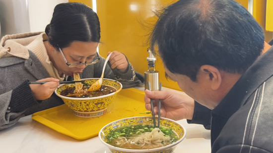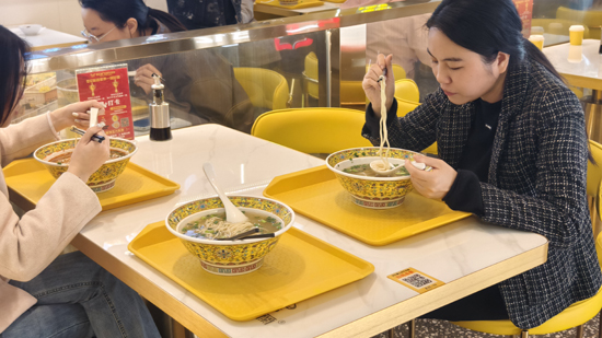 食客们正在享用地道的兰州牛肉面