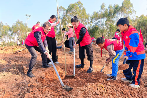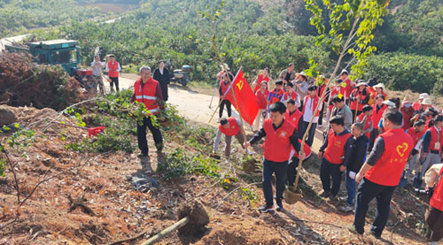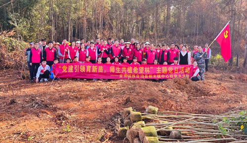 春风拂绿,万象更新。在第48个植树节来临之际,为深入践行 “绿水青山就是金山银山” 的发展理念,充分发挥党建引领作用,将生态文明与劳动实践相结合,3 月 12 日上午,广西金秀瑶族自治县桐木镇中心校党总支部在镇政府组织下,组织党员干部与学生志愿者前往龙庆村邓池村背岭,开展“党建引领育新苗,师生共植希望林”主题党日活动。