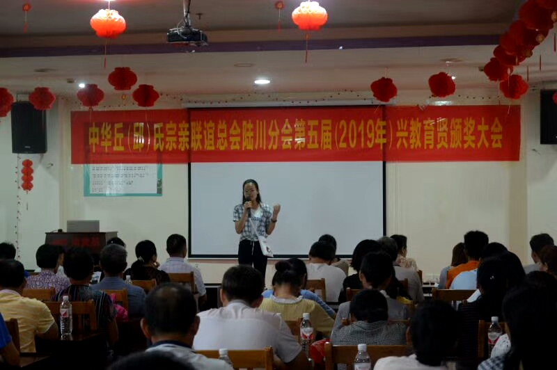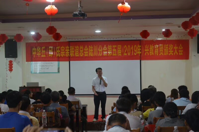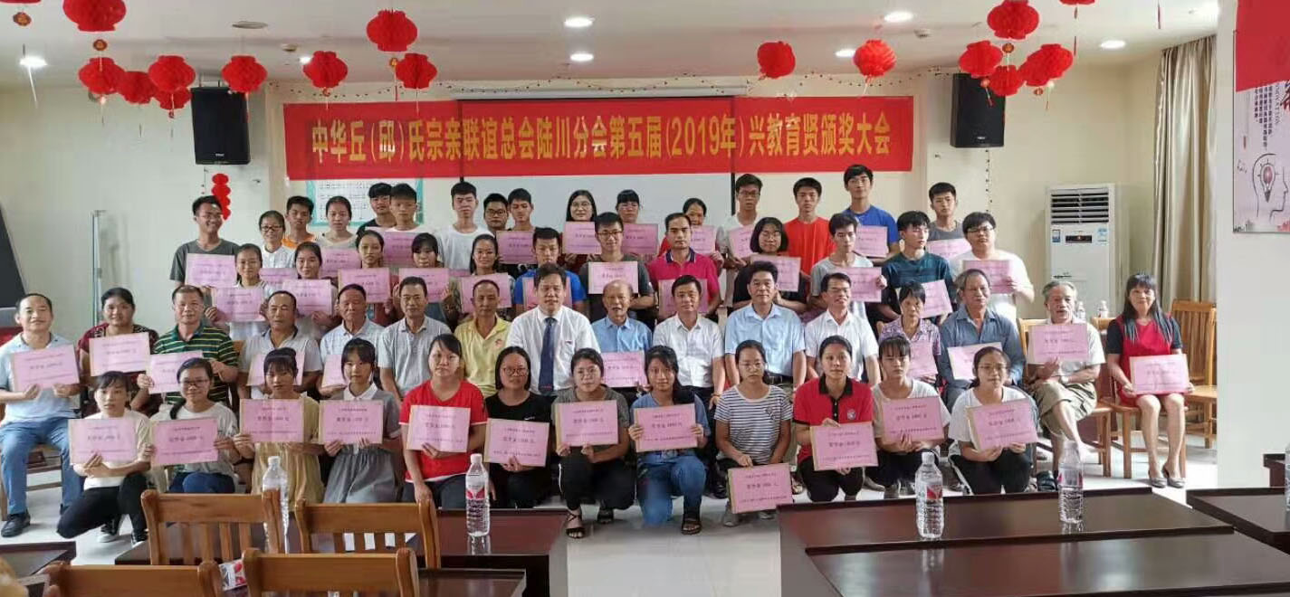 8月17日,陆川丘(邱)氏宗亲所在的中华丘(邱)氏联谊总会广西陆川分会,在陆川县城的肯麦基集团大楼(陆川肯麦基大楼)举行了第五届兴教育贤大会,分会领导对51名考取重点大学的莘莘学子们给予奖励,鼓励学子们奋发读书,成功自己,回报社会。同学们在会上收到了极大的鼓舞,他们表示在宗亲们的鼓励和期盼,在祖国的高度重视教育氛围下,将会百倍努力,攀登知识和科学的高峰,做一名国家的建设者 挑重担人。
