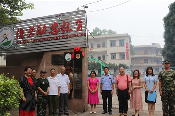 8月22日上午,广西德馨励志教育学校与广西拥军优属基金会在南宁市长堽岭培训基地正式揭牌成为战略合作伙伴。原武警广西总隊政治部主任郭云疆、广西拥军优属党委书记许文仙,广西区未成年人管教所副所长 刘卫平,德孝中华周刊、中关村精准医学基金会德孝中华公益基金管理委员会委员潘超平、广西德馨励志学校长莫姿燕及全体师生参加了揭牌仪式。